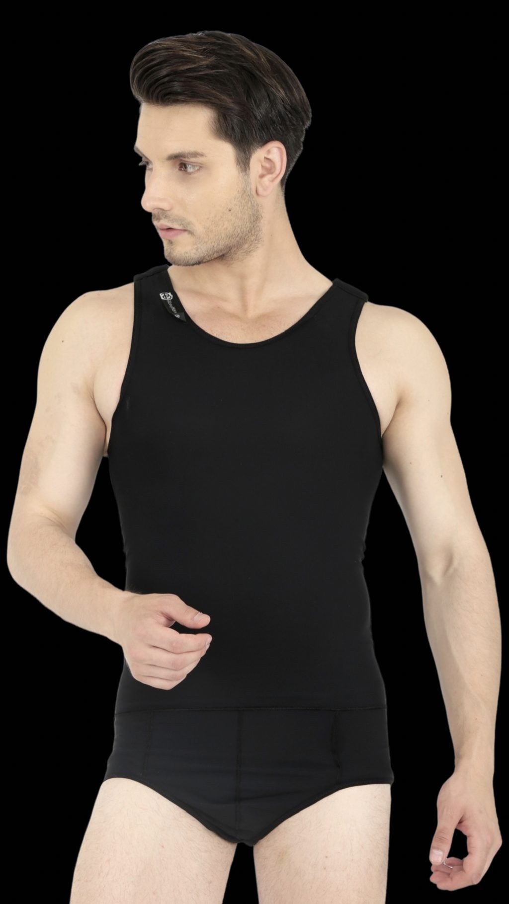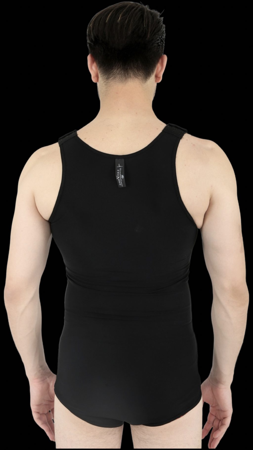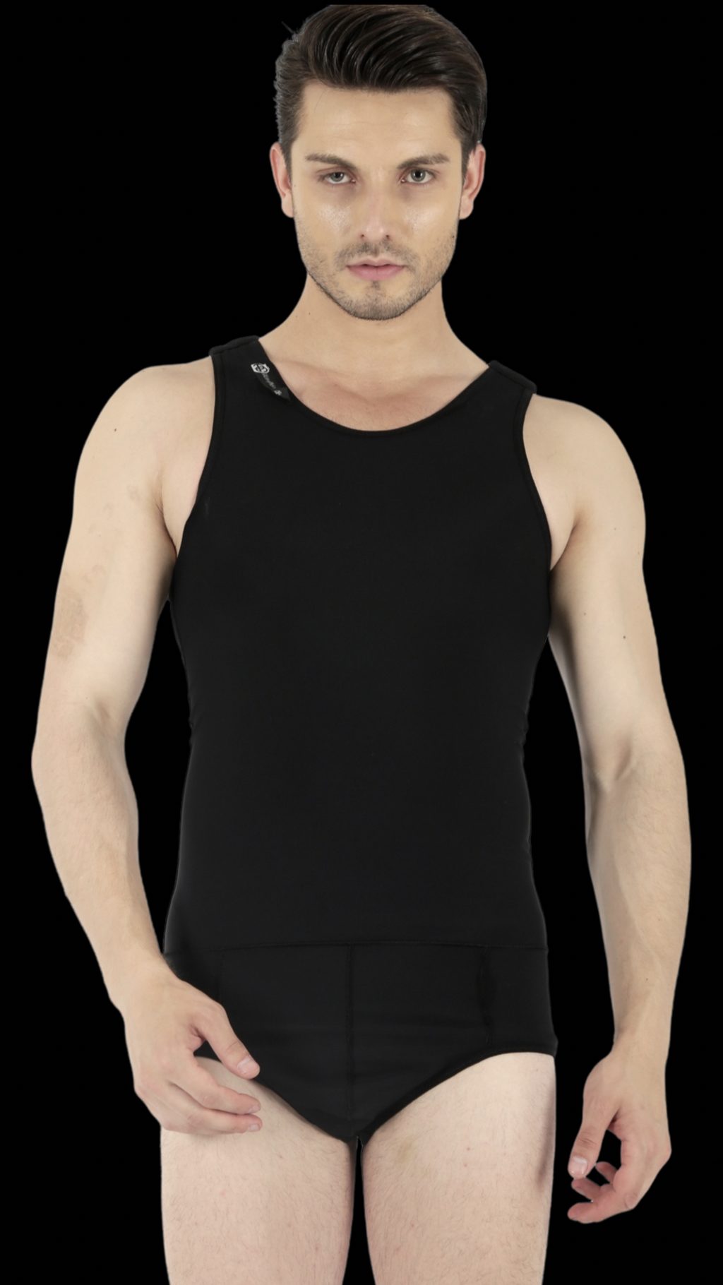 GA.Kompressionsbody für Mann wirdim Bereich der Gynäkomastie nach Brustrekonstruktionen verwendet. Der Hakenverschluss an den Schultern ermöglicht eine bessere Anpassung der Kompressionsstärke sowie zusätzliche Verstärkung im Brustbereich um den richtigen Halt zu gewährleiste.