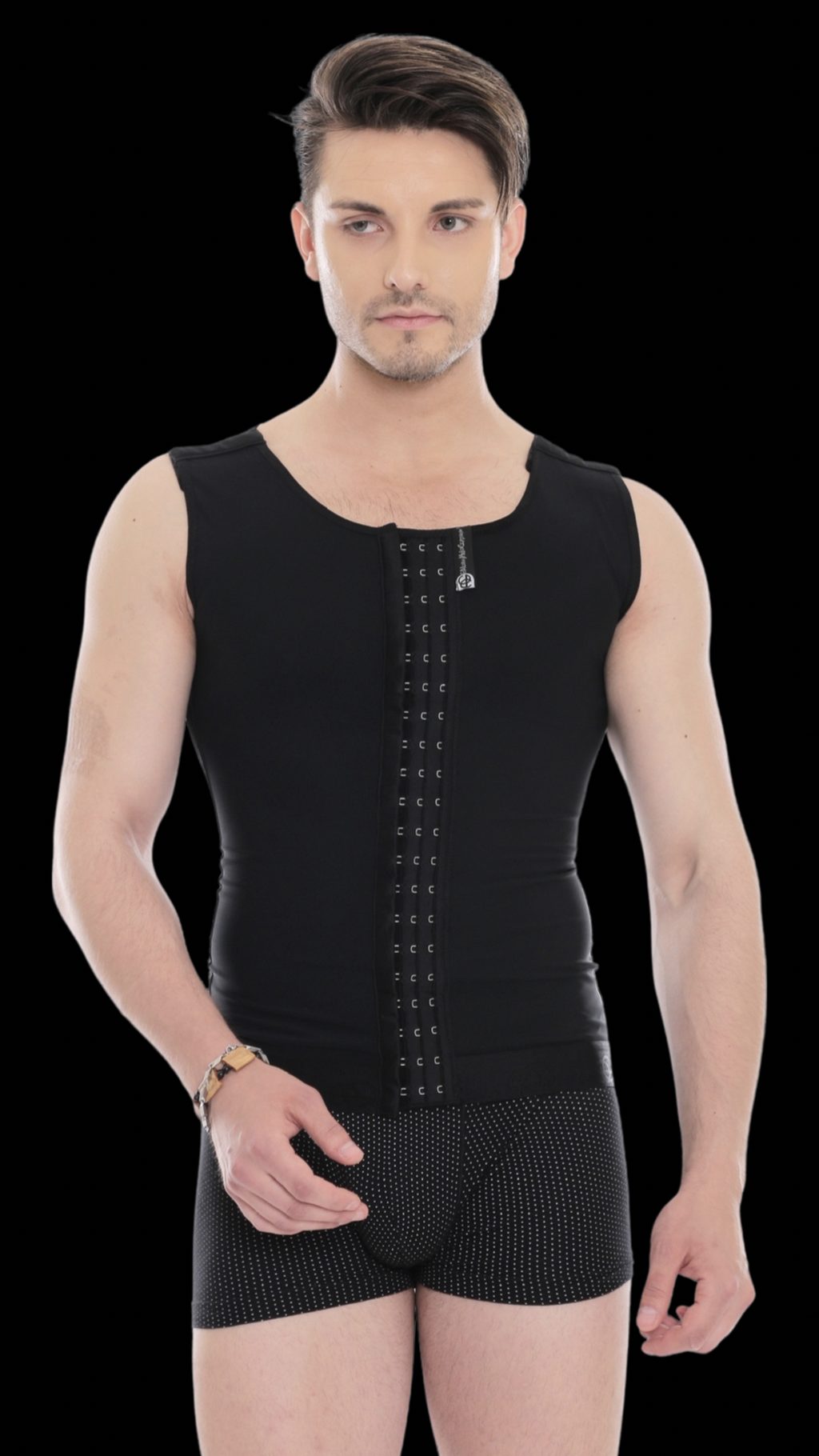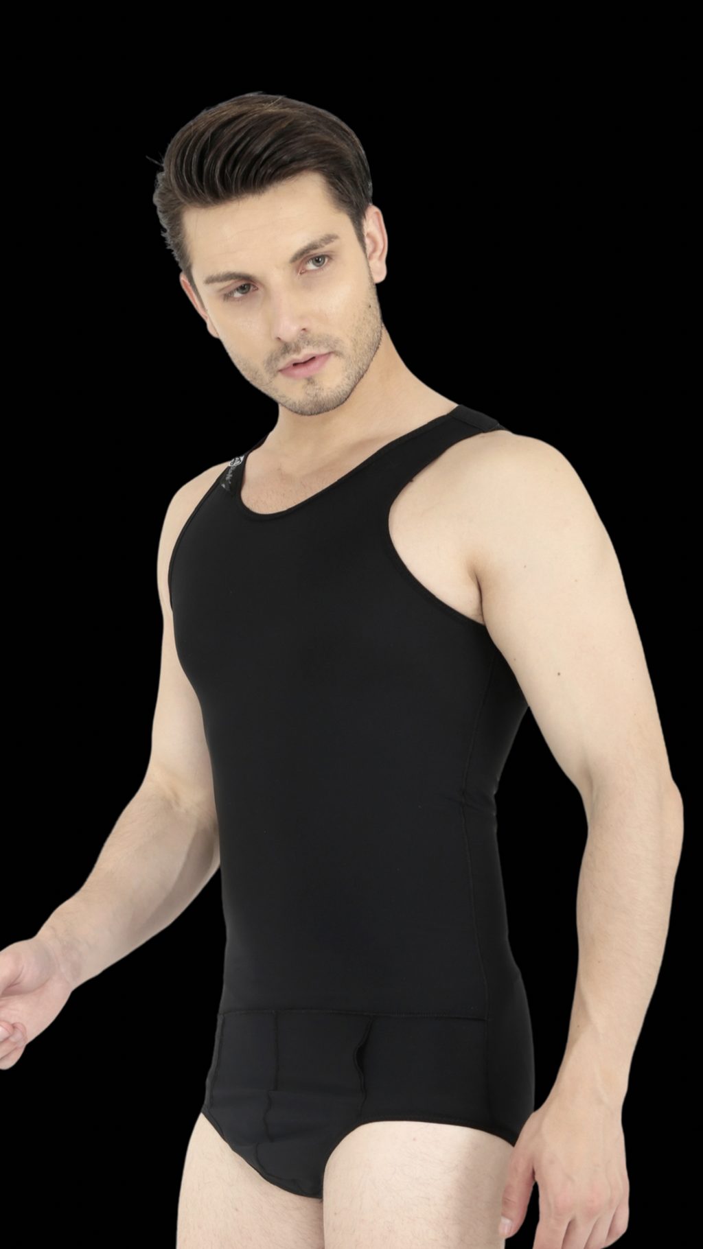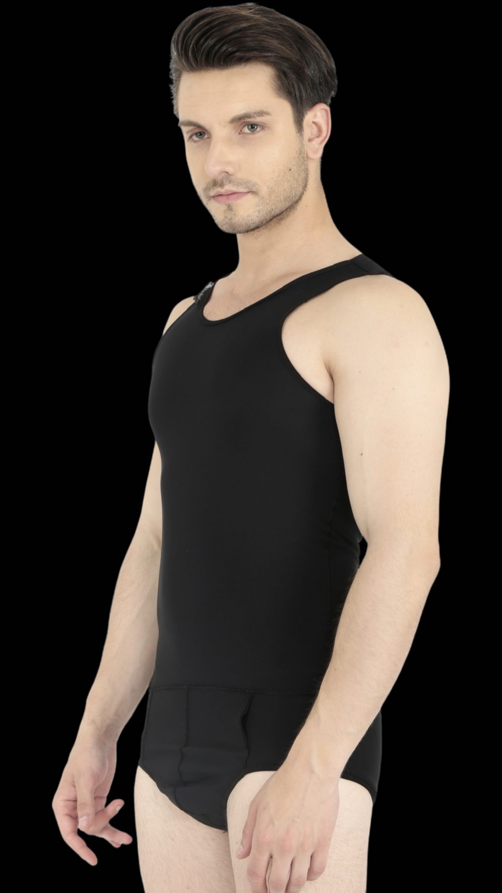 GA.Kompressionsbody für Mann wirdim Bereich der Gynäkomastie nach Brustrekonstruktionen verwendet. Der Hakenverschluss an den Schultern ermöglicht eine bessere Anpassung der Kompressionsstärke sowie zusätzliche Verstärkung im Brustbereich um den richtigen Halt zu gewährleiste.